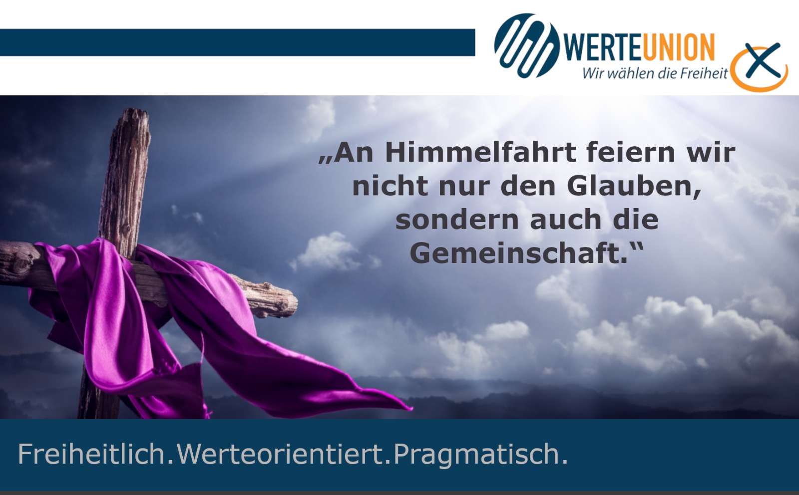 So verstehen wir von der WerteUnion diesen Tag auch als Auftrag: Gerade in unsicheren Zeiten stehen wir für eine Politik, die nicht ideologischen Moden hinterherrennt, sondern sich an bleibenden Werten orientiert. Himmelfahrt ruft uns auf, den Blick zu heben – und im Vertrauen auf unsere kulturellen Wurzeln und mit klarem Kompass gemeinsam an einer besseren Zukunft zu arbeiten. Werte geben Richtung. Und Richtung gibt Halt.